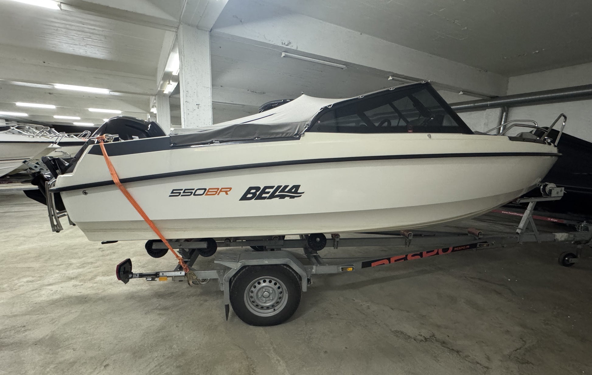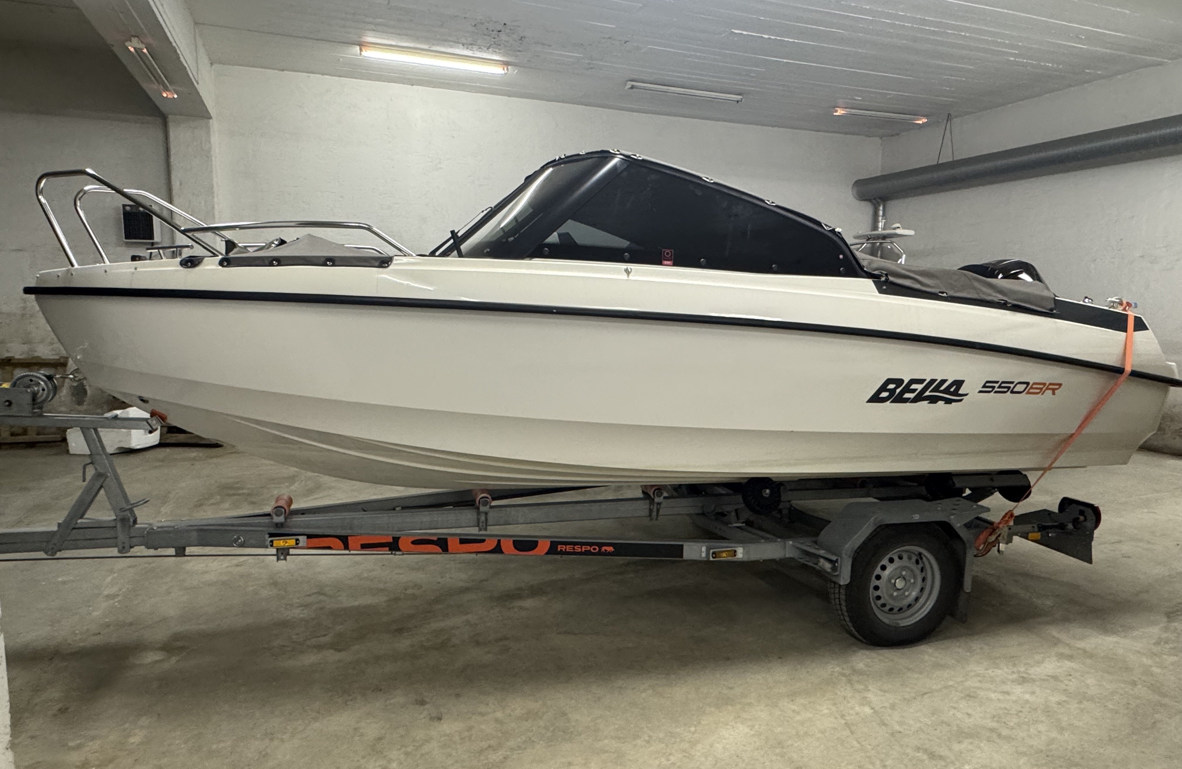 Meget pen og velholdt Bella 550BR med Mercury F100. Selges med Respo R1350 tilhenger!