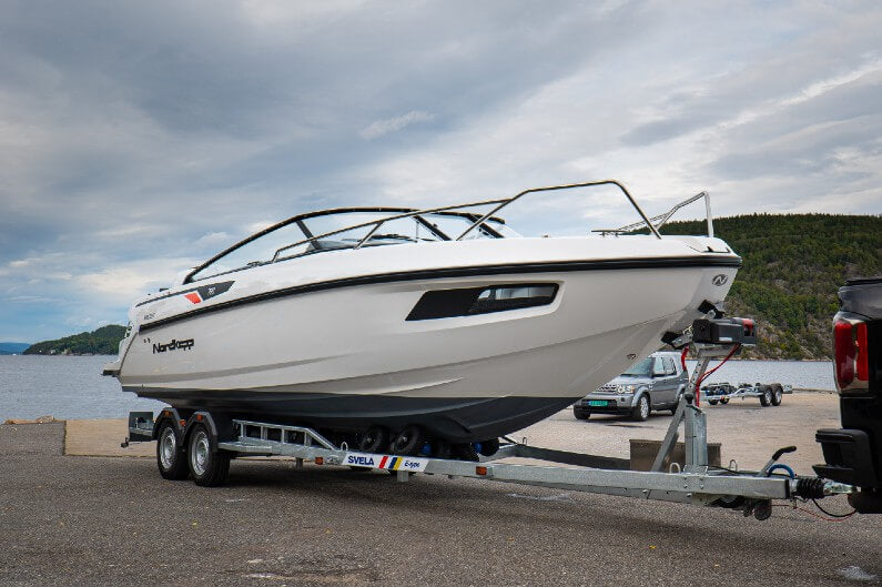 SVELA B27XLE er en toakslet båthenger for båter fra 22 til 27 fot, og med denne hengeren gjøres sjøsetting og båtopptak på enkel og trygg måte.